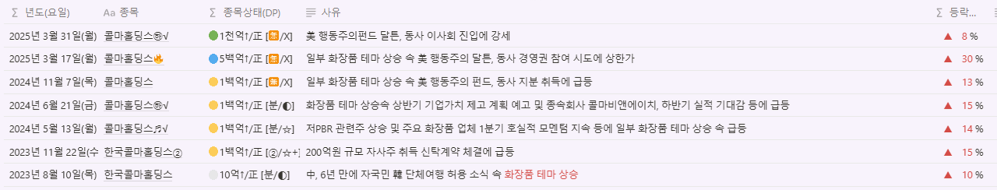 | 콜마홀딩스㉻√ | 🟢1천억↑/正 [🈚/X] | 美 행동주의펀드 달튼, 동사 이사회 진입에 강세 | ▲ 8 % |