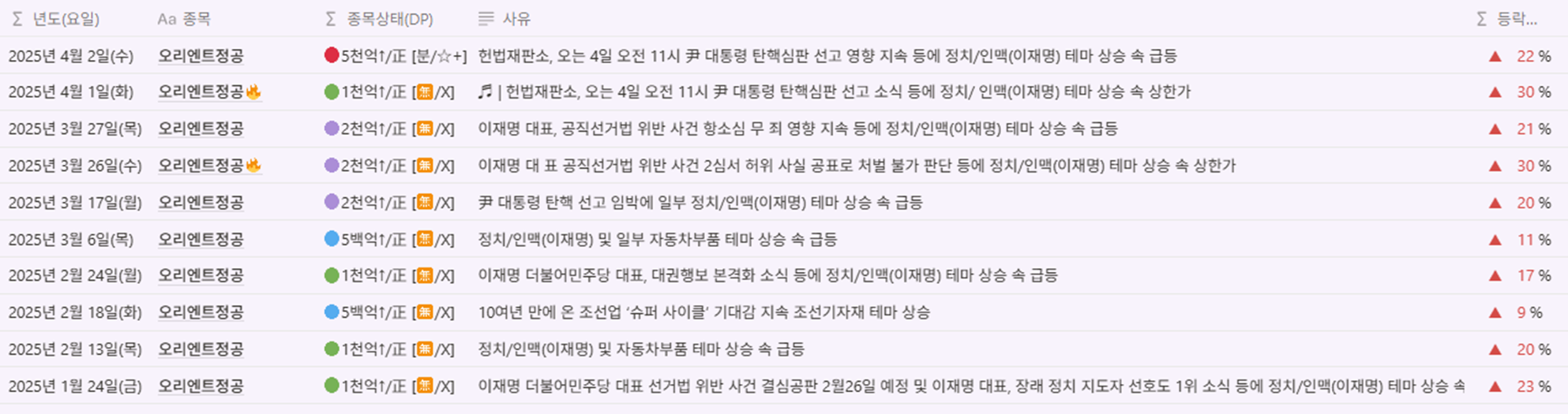 오리엔트정공 🔴5천억↑/正 [분/☆+] 헌법재판소, 오는 4일 오전 11시 尹 대통령 탄핵심판 선고 영향 지속 등에 정치/인맥(이재명) 테마 상승 속 급등 ▲ 22 %